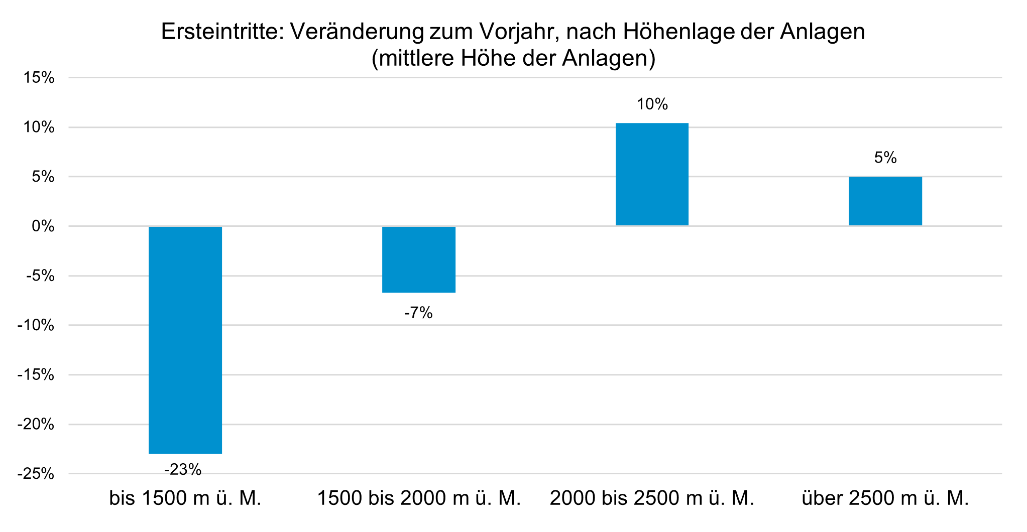 Ersteintritte nach Höhenlage der Anlagen – Veränderungen zum Vorjahr.
