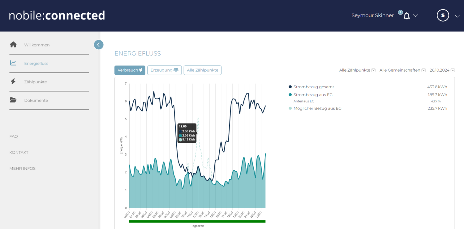 NOBILE stellt sowohl Erzeuger als auch Verbraucher auf einer eigenen digitalen Plattform dar. Am Nassfeld sind derzeit 58 Zählpunkte an die Energiegemeinschaft angeschlossen.