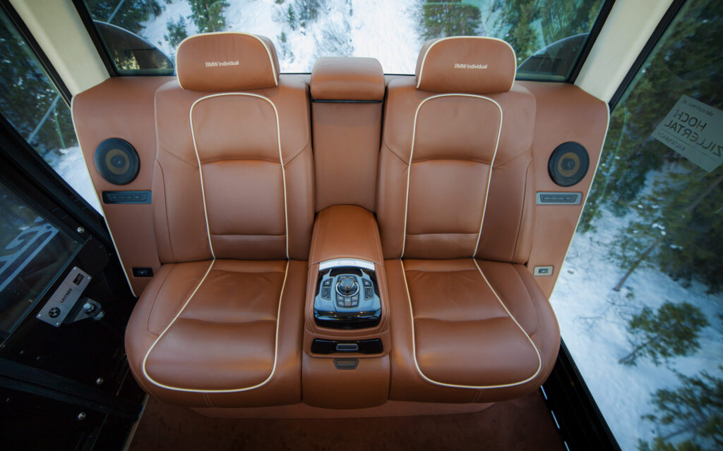 Die neue VIP-Gondel in der Skiregion Hochzillertal-Kaltenbach ist der perfekte Ort, um besondere Momente zu genießen. Die Gondel ist ausgestattet mit dem exklusiven Interieur von BMW Individual und modernster Technik von LEITNER ropeways und bietet maximalen Komfort in luftiger Höhe.