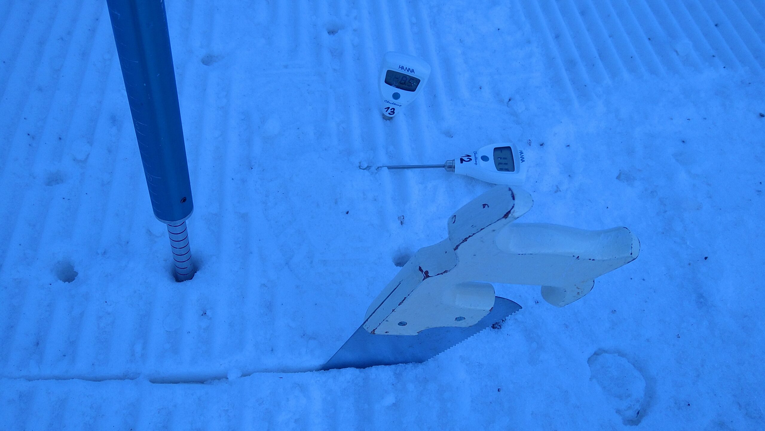 Zunächst wurden die Werte des alten Schnees erfasst, anschließend über Nacht der Snowglue LiMES-Schnee aufgetragen und am Morgen eingearbeitet. Zusätzlich wurden zwei Vergleichsflächen nach dem gleichen Verfahren miteinbezogen.