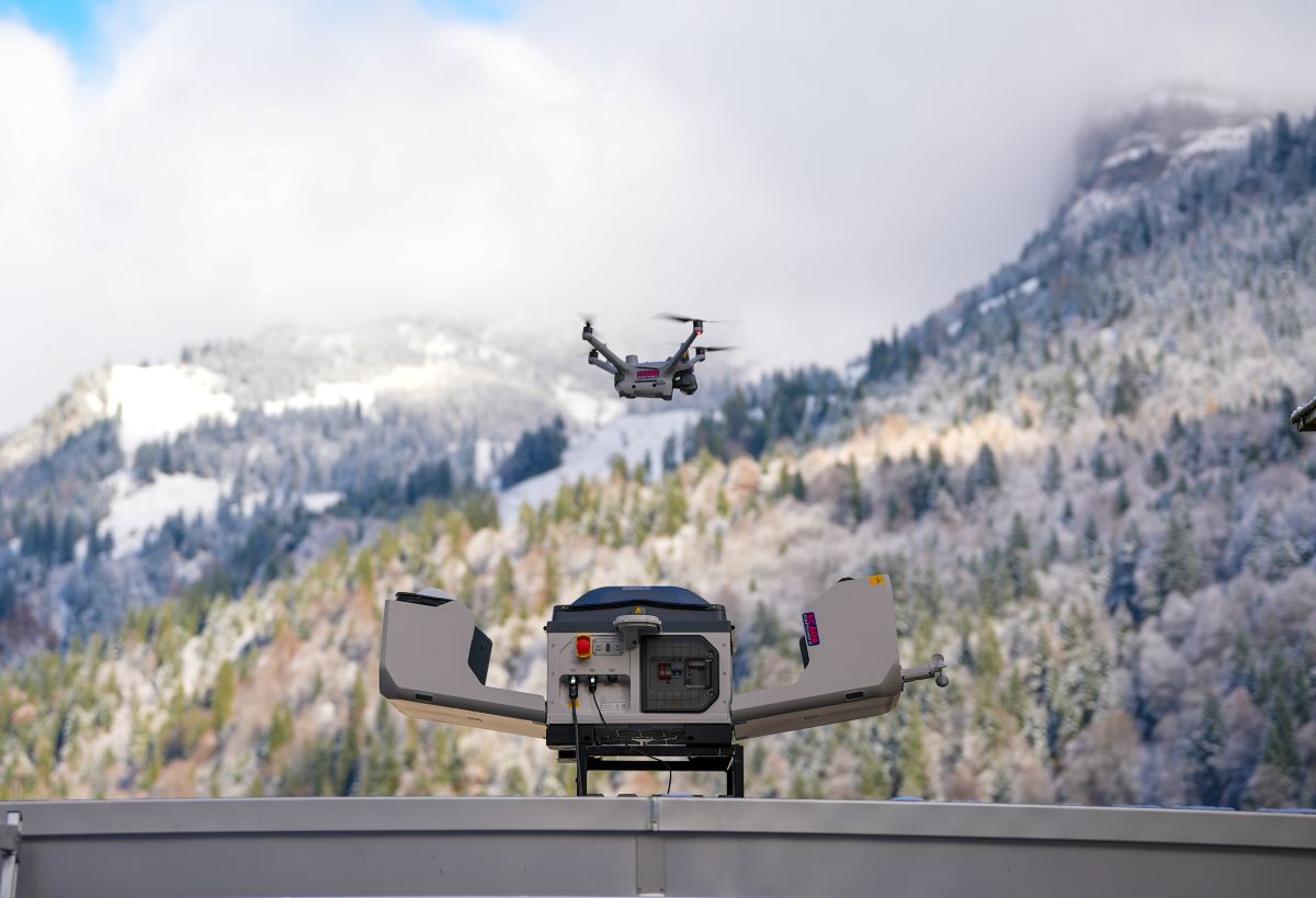 Nahe der Talstation wird die Drohne in einer Box geladen und beheizt. Von dort aus startet sie ihre Flüge.