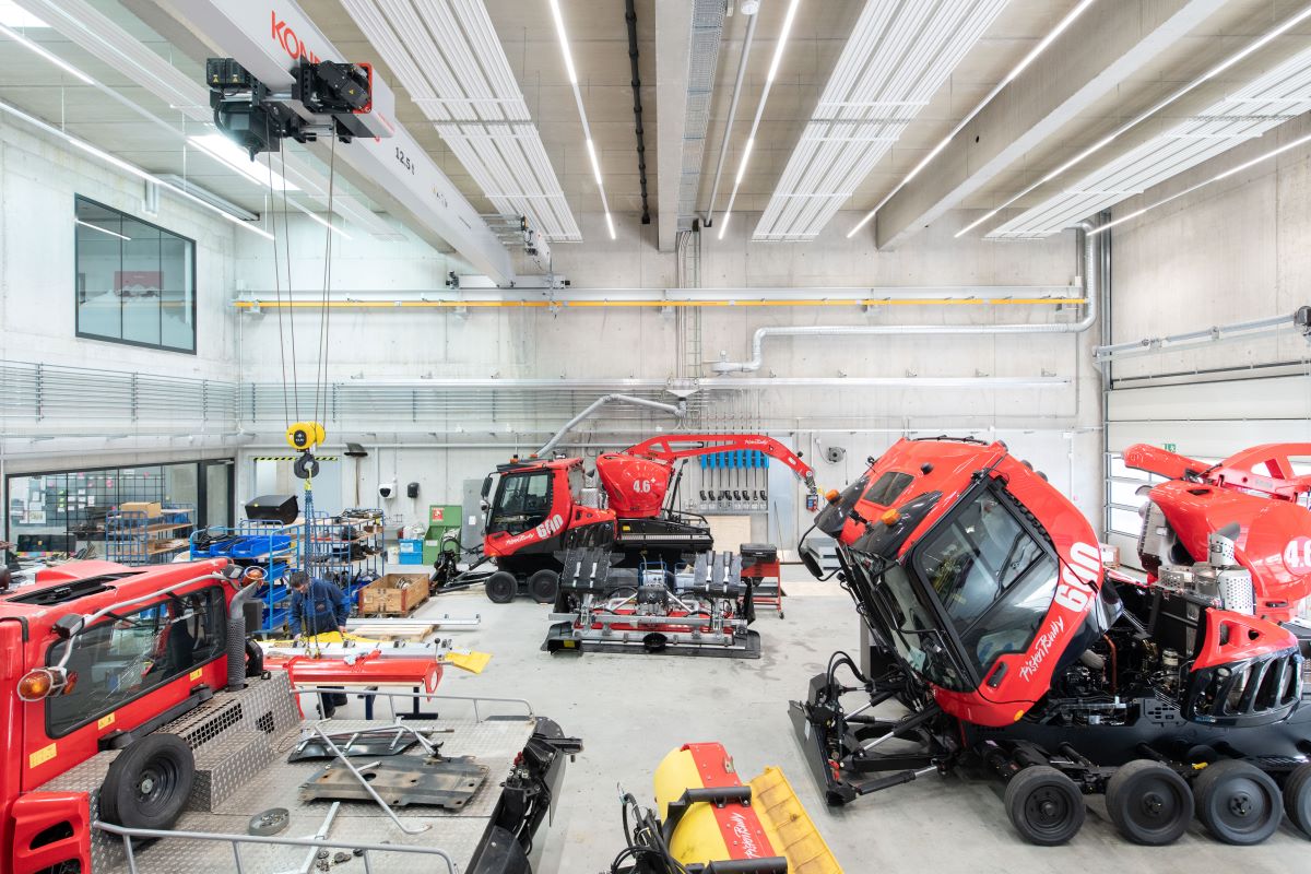 Ein Geschäftsfeld ist unter anderem die Endmontage der PistenBullys, die in der Werkstatt von KÄSSBOHRER SCHWEIZ AG stattfindet. Die Fahrzeuge und Komponenten werden in der Montagehalle zusammengebaut und nach Kundenwunsch angepasst und endmontiert.