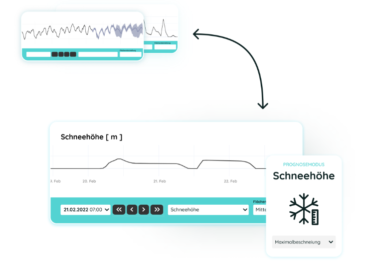 In der neuesten Version wird die Bandbreite der möglichen Schneehöhenentwicklung sogar bis zum Saisonende prognostiziert. Dabei lässt sich auch der zu erwartende Wasser- und Energieverbrauch durch die Schnee-Erzeugung je nach Beschneiungsstrategie im Voraus mitbestimmen.