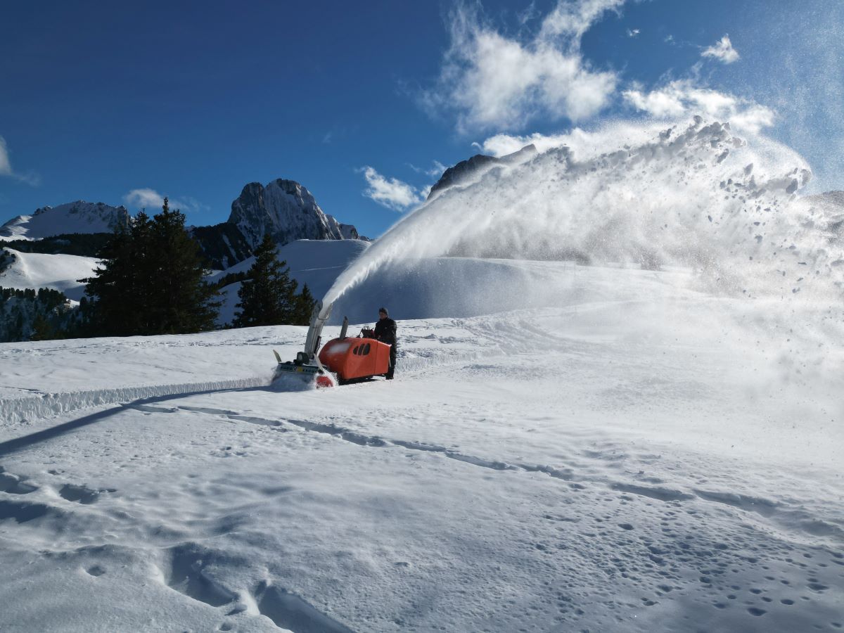 ist optimal geeignet für die Schneeräumung auf Terrassen, Parkplätzen, Skihütten, Winterwanderwegen und Bergbahnen. © ZAUGG