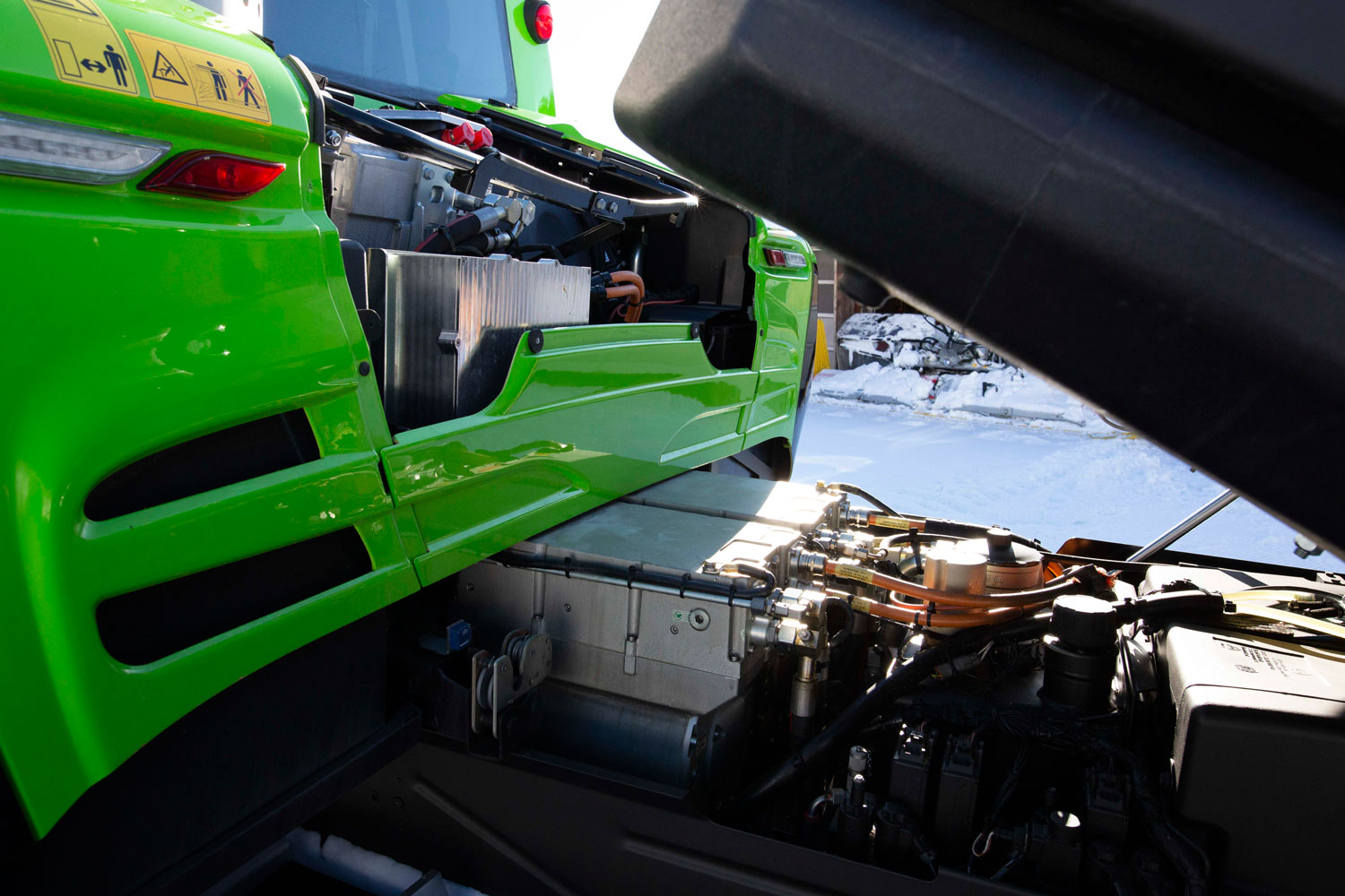 Der konstante Betrieb des Dieselmotors im optimalen Drehzahlbereich macht den neuen PistenBully 600 E+ extrem effizient, sparsam und um 20 Prozent leiser als den PistenBully 600 Polar. Bei der Bergfahrt treibt der Motor über das Verteilergetriebe die Generatoren und Hydraulikpumpen an. Das intelligente Energiemanagement sorgt dafür, dass während der Talfahrt die Elektromotoren als Generatoren fungieren und über das Verteilergetriebe die Hydraulikpumpen unterstützen. Dies entlastet den Motor und reduziert so den Kraftstoffverbrauch – ebenfalls um bis zu 20 Prozent.