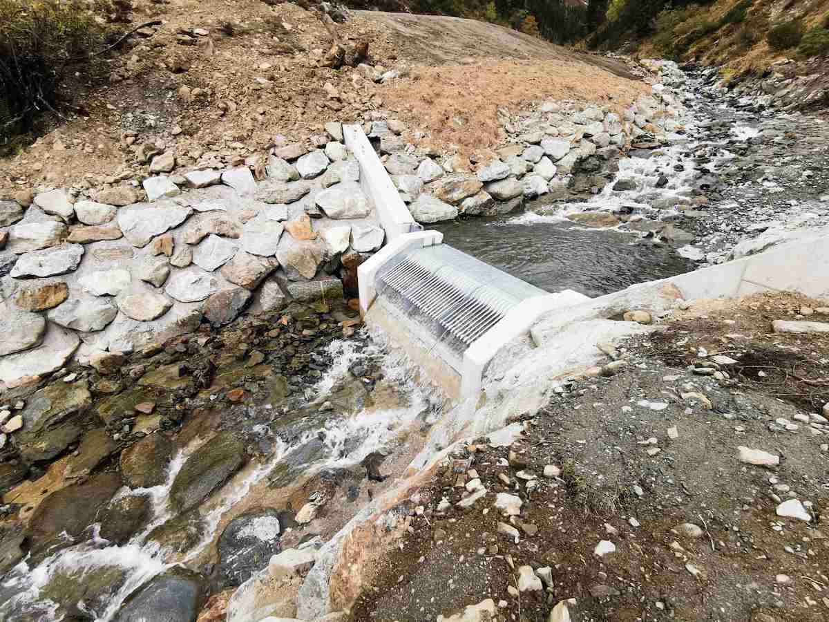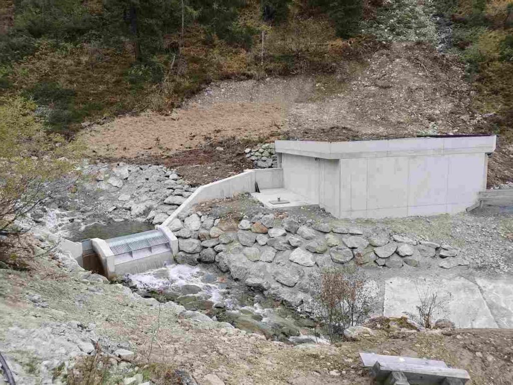Die Wasserfassung wurde in Form eines COANDA-Rechens mit integriertem Feinrechen und Restwasserabgabe umgesetzt. Diese selbstreinigende Bauweise eignet sich zur Wasserentnahme aus einem Gebirgsbach.