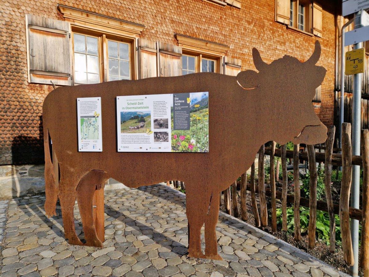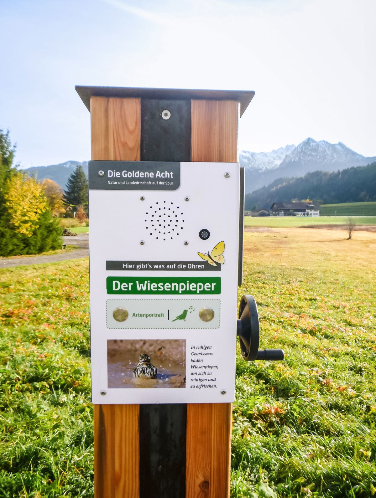 Beim Obermaiselsteiner Landwirtschaftspfad „Die Goldene Acht“ erfahren kleine und große Wanderer an insgesamt 13 Info- und Mitmachstationen von der Wechselwirkung zwischen Landwirtschaft und Naturschutz und wie sich das frühere Bauerndorf zum Tourismusort entwickelte.
