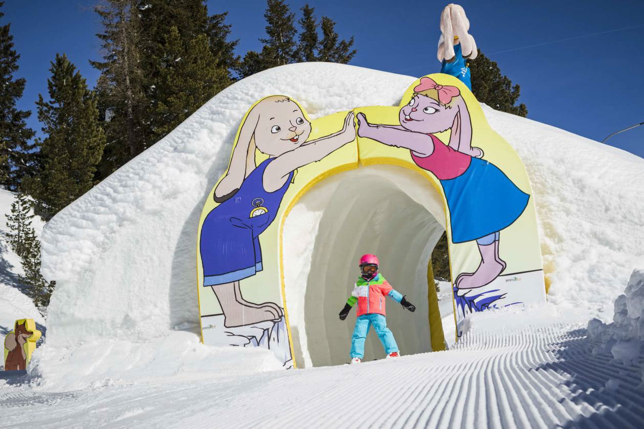 Wohin nach dem Kinderland oder dem Playground? In Kidsslopes können die Kleinen über Wellenbahnen flitzen, durch Schneetunnel düsen und bei Sound-Elementen abklatschen.