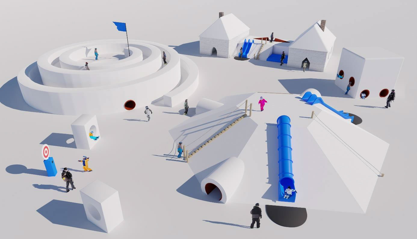 Playgrounds verlegen das Erlebnis Spielplatz in den Schnee: Fantasievolle Schneebauten wie Iglus, Rutschen und Tunnel laden dazu ein, auf Entdeckungstour zu gehen. Kinder dürfen hier nicht nur spielen, sondern erleben etwas absolut Neues.