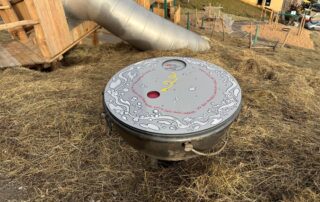 Kombi aus Infotafel, Murmelbahn, App-Rätsel.