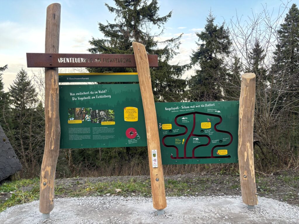 Anfang 2026 wird am Fichtelberg – Sachsens höchstem Gipfel – der neue Abenteuerweg eröffnet: Ein 5,6 Kilometer langer Wanderweg mit 22 Erlebnisstationen und einem großen Spielplatz. Das Konzept kombiniert den klassischen Themenweg mit einer interaktiven Kugelbahn und einem digitalen App-Krimi.