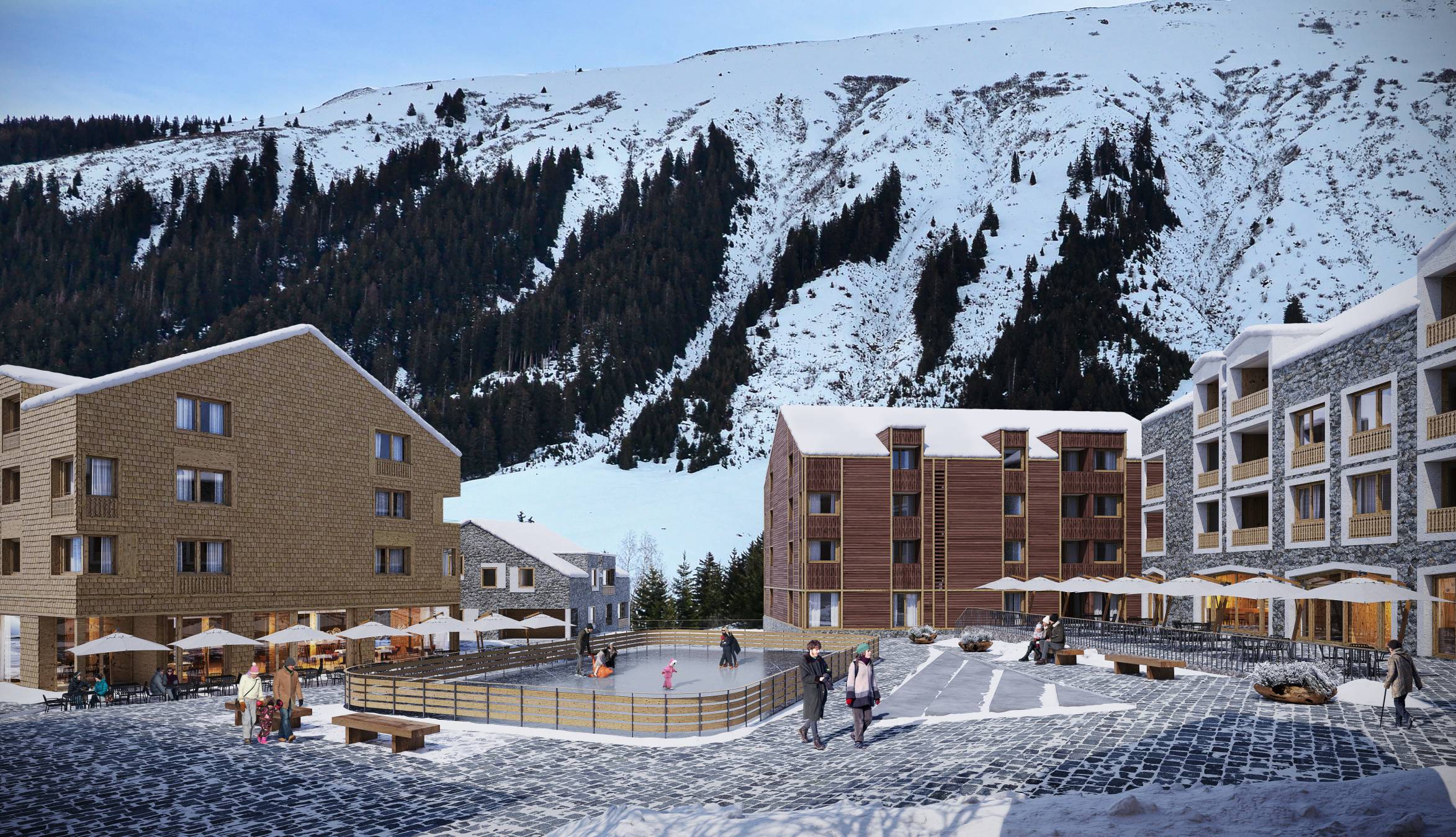 An einzigartiger Lage am Talende in Sedrun/Dieni sollen auf dem Gelände des heutigen Parkplatzes gegenüber der Talstation Dieni der SkiArena Andermatt-Sedrun bis 2027 13 Gebäude mit 410 Hotelzimmern entstehen.
