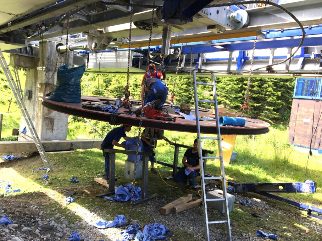 Arbeiten an der Seilscheibenlagerung im Zuge des Retrofit.