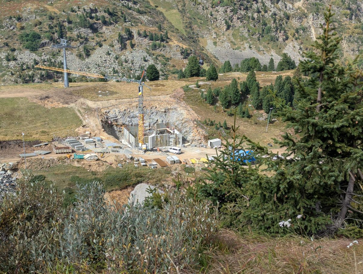 Eine Besonderheit ist der Kollektortunnel zwischen dem Entnahmebauwerk und dem Schieberbauwerk. Das überschüssige Aushub-Material wird für die umfangreichen Pistenbaumaßnahmen rund um das Baufeld verwendet. Nach Skisaison-Ende folgt der zweite Teil der Arbeiten, die 2026 fertig gestellt werden.
