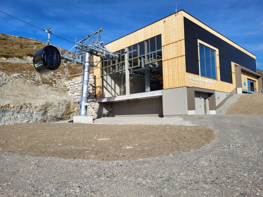 Die neue Bergstation der Loser Panoramabahn beeindruckt mit moderner Architektur und nachhaltigen Elementen wie der Integration von Photovoltaik. Ein Meilenstein für die Verbindung von Technik und Umweltbewusstsein in der Region.