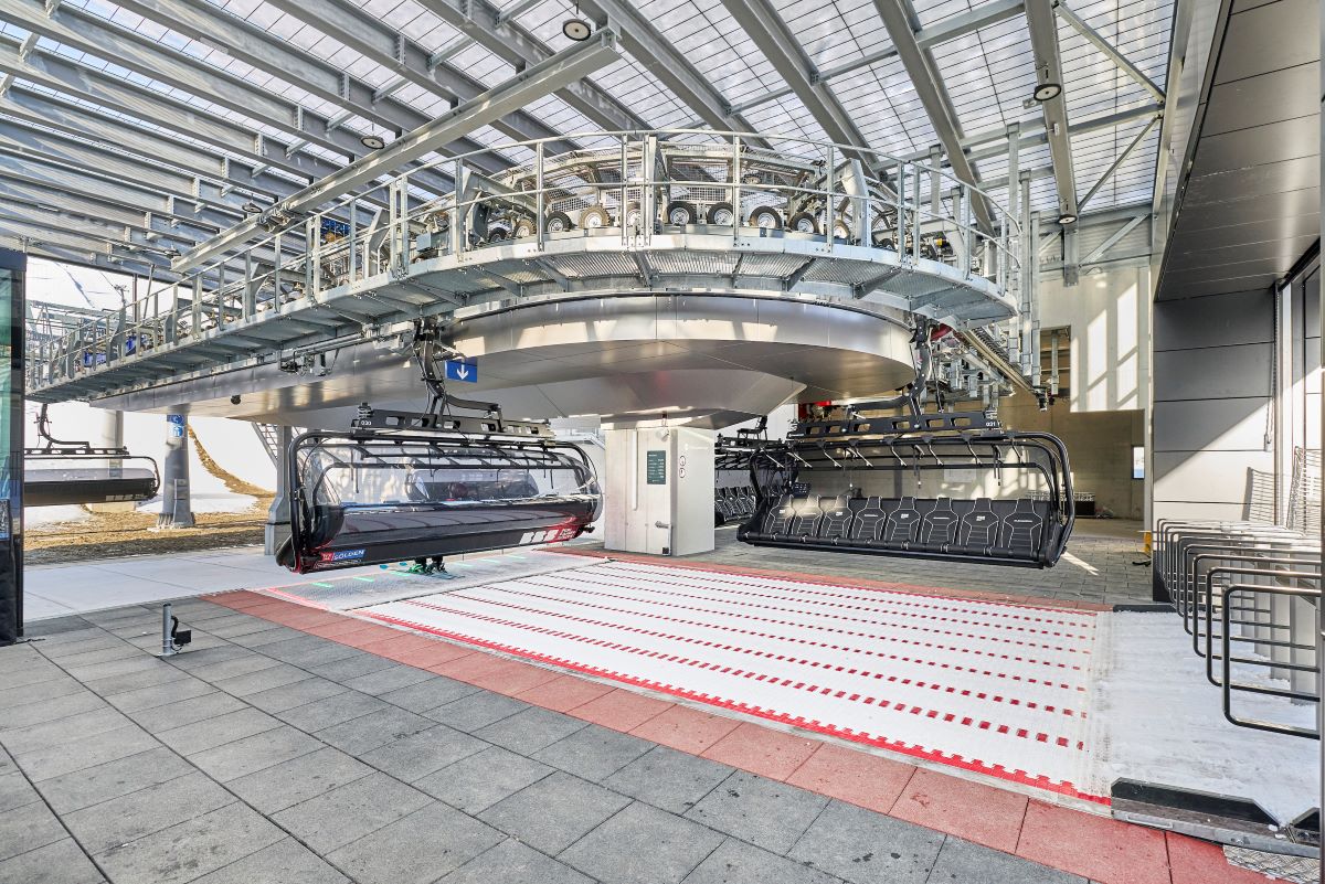 Mit einer Fahrzeit von nur 3,5 Minuten, Wetterschutzhauben, Kindersicherheitsbügeln und automatischem Förderband bietet sie maximalen Komfort und transportiert bis zu 4.000 Personen pro Stunde.