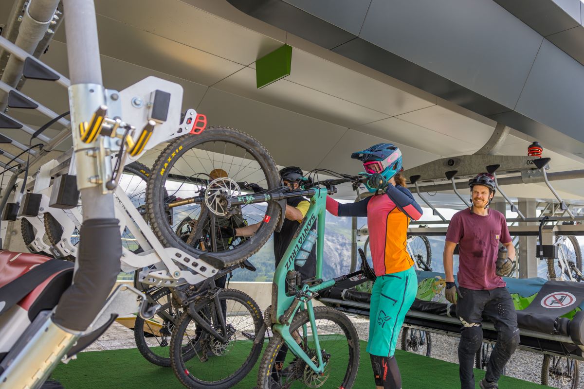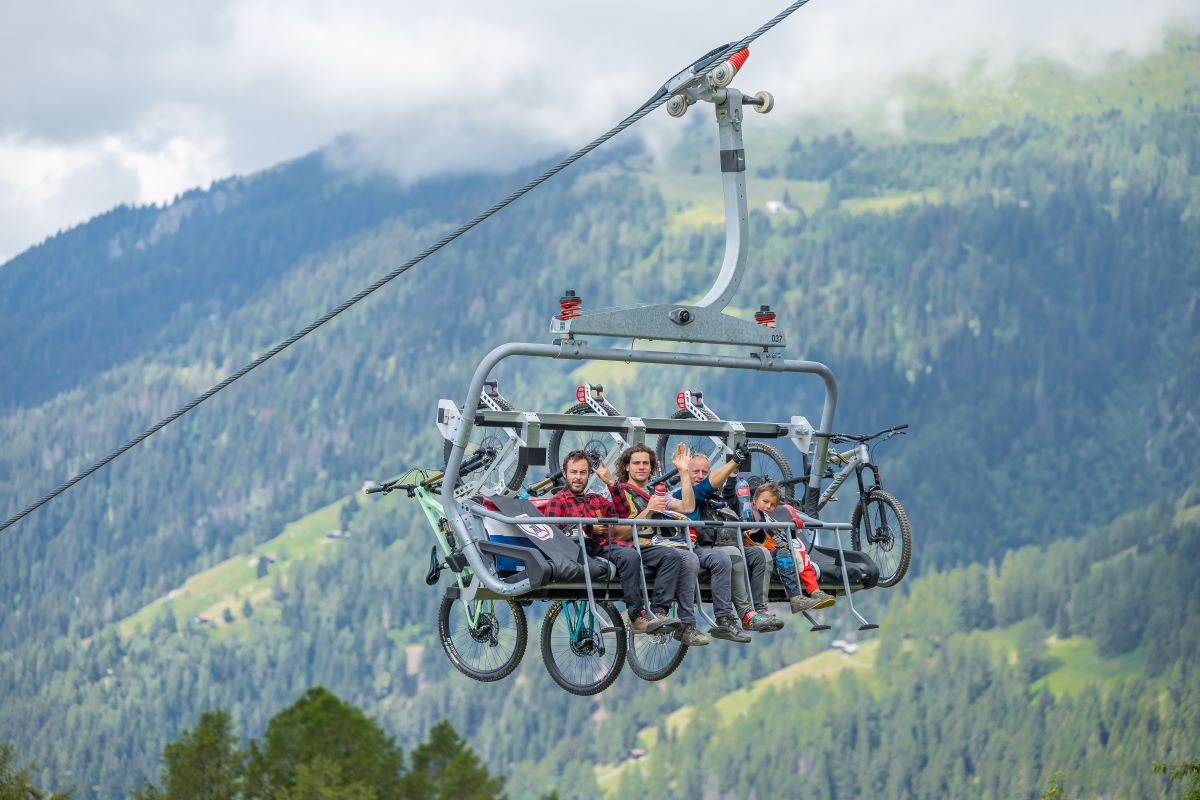 Dafür kommt ein besonderes Transportsystem zum Einsatz. Für den Transport von Fahrrädern mit einer Sesselbahn entwickelte DOPPELMAYR einen innovativen Anbausatz.
