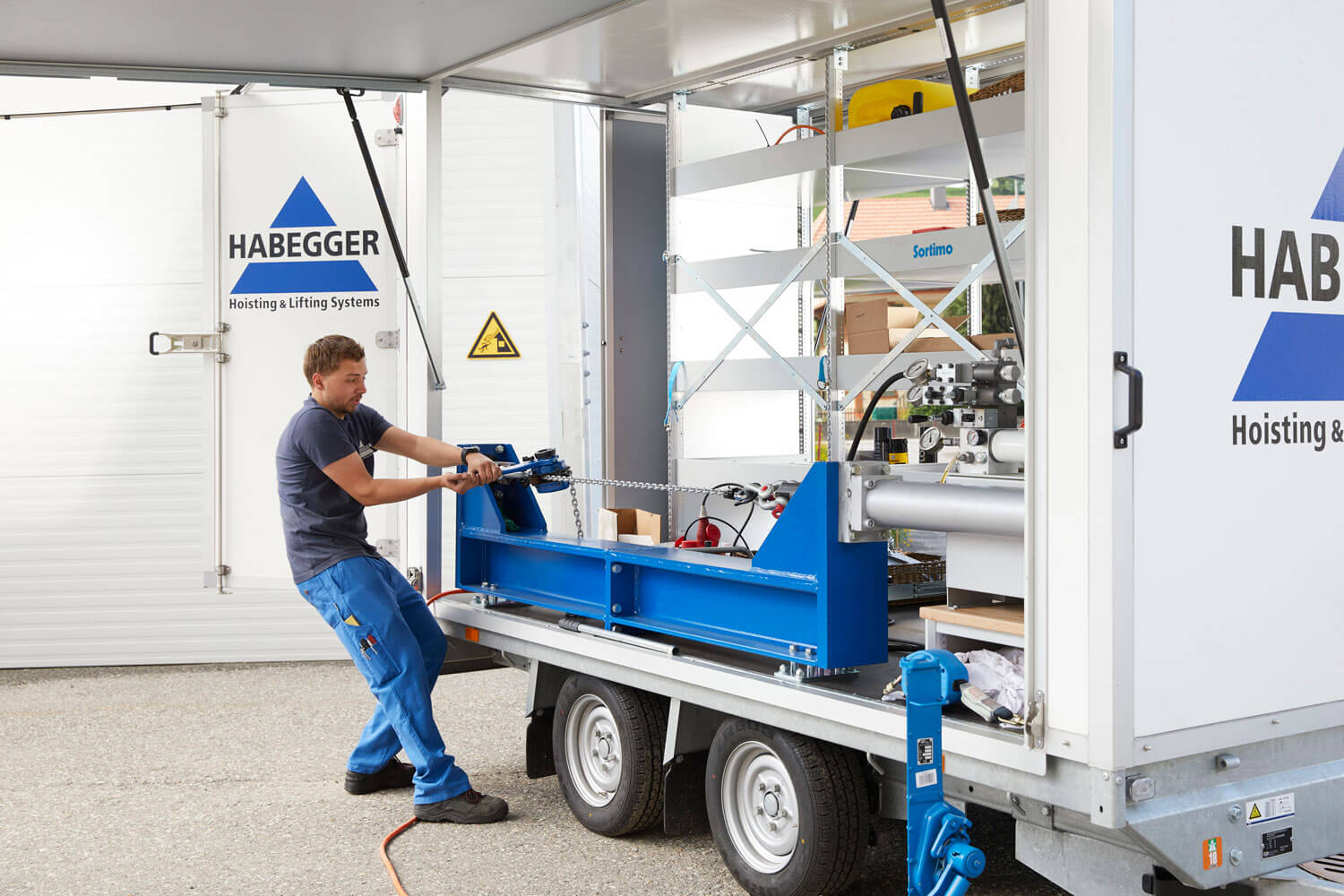 Viele Firmen haben die Wichtigkeit einer fachgerechten Wartung und Instandstellung erkannt und vertrauen ihre Seilzüge, Krananlagen, Anschlagmittel, Absturzsicherungen, Kettenzüge, etc. den Fachkräften von HABEGGER an. Die Arbeiten werden nicht nur im eigenen Werk, sondern auch bei den Kunden vor Ort oder direkt auf Baustellen durchgeführt. Dazu steht eigens ein ausgerüsteter Prüfanhänger mit integrierter Prüfbank für dynamische Prüfungen bis zwölf Tonnen zur Verfügung.