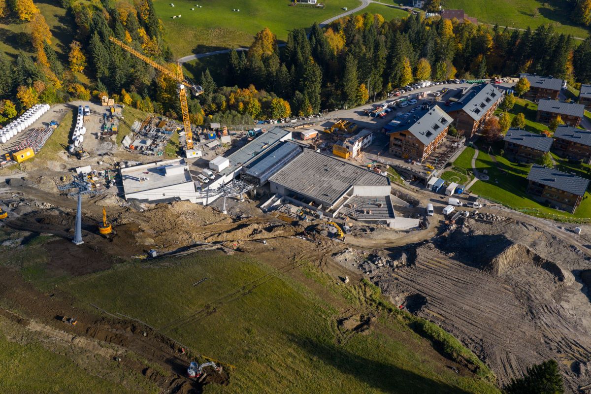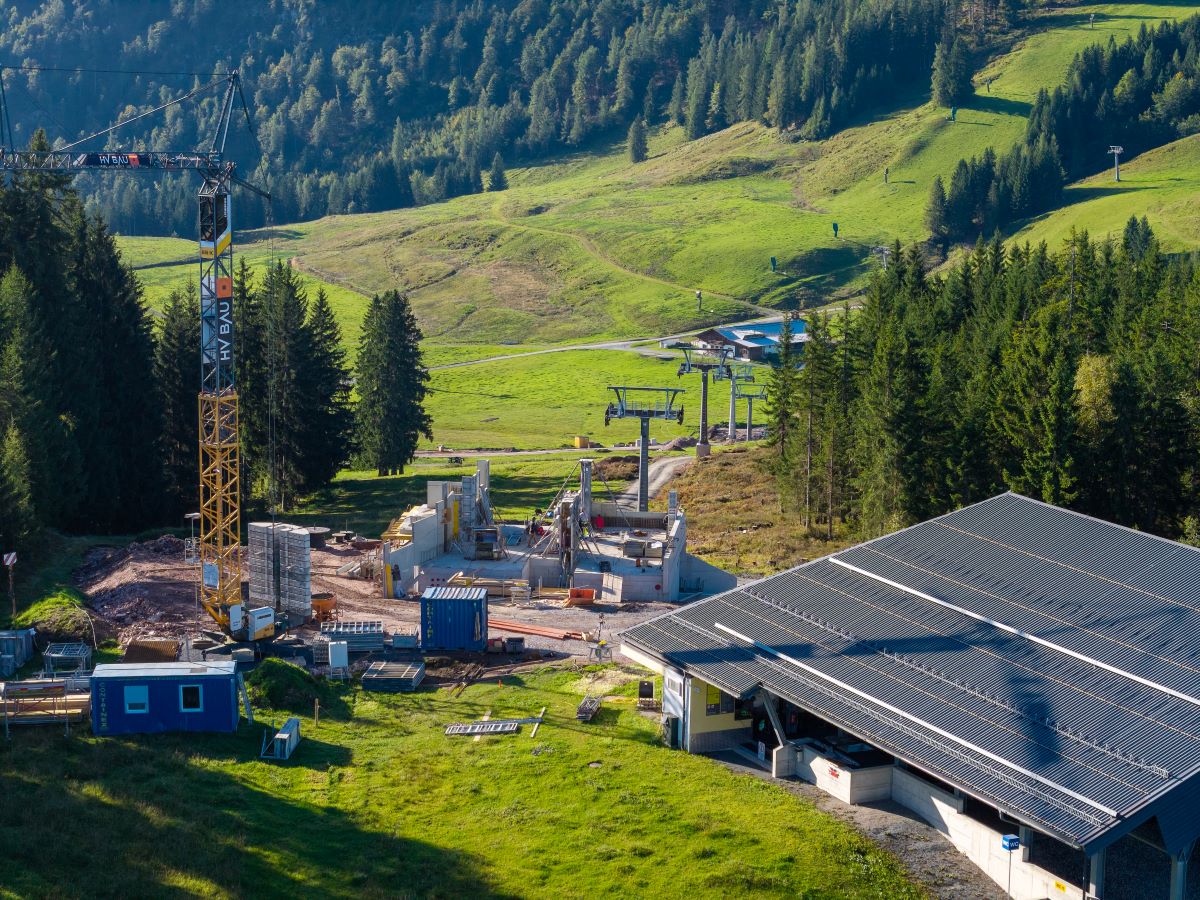 Bild von den Bauarbeiten an der Maiskopf-Sesselbahn, die ihre Kapazität deutlich steigern wird.