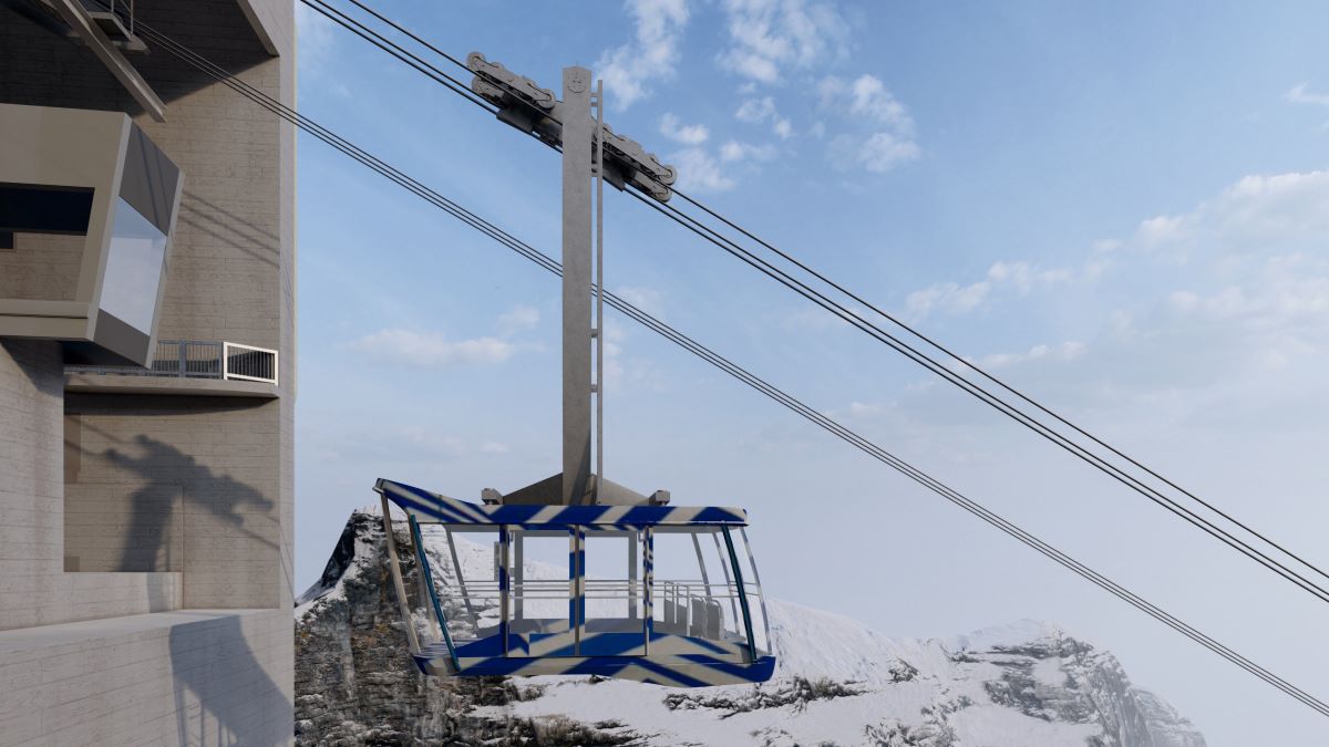 Die neue Pendelbahn kommt mit nur einer Stütze aus. Die bestehende Stütze 2 wird durch eine 43 Meter hohe Zwischenstütze ersetzt, die zusätzlich eine Gästeplattform für den Ein- und Ausstieg bietet. Durch die erhöhte Seilspannung und die größere Pendelfreiheit der Kabinen verbessert sich auch die Windstabilität der Bahn.
