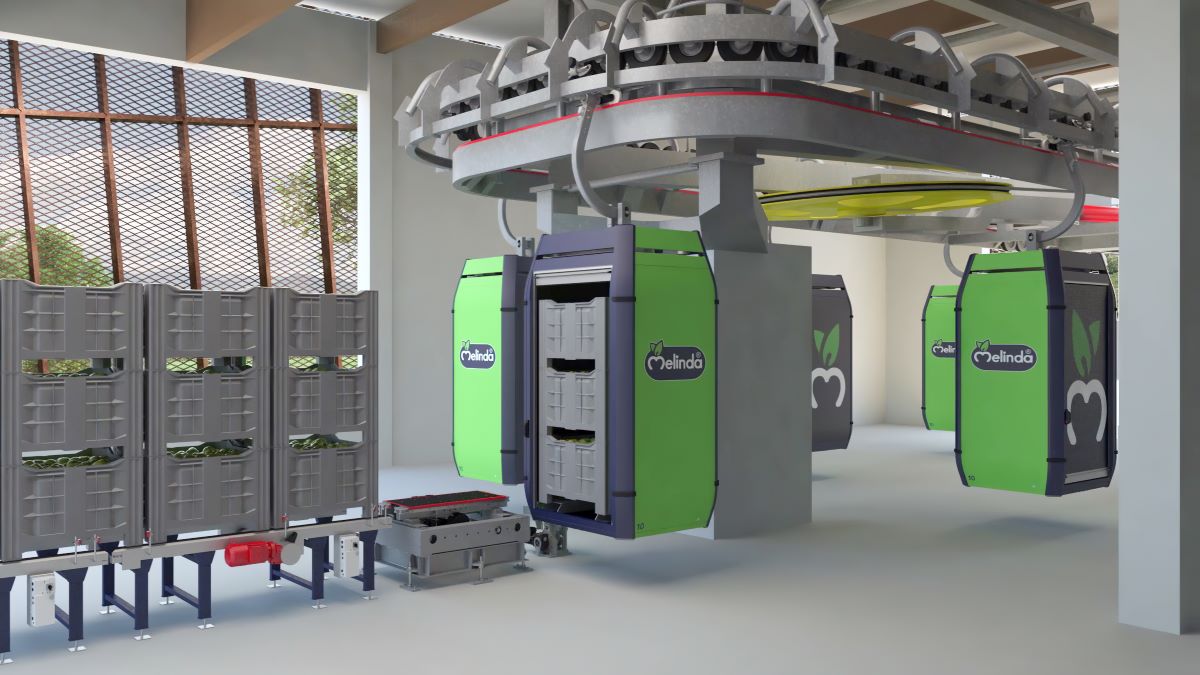 Eine Einseilumlaufbahn mit kuppelbaren Kabinen wird auf einer Länge von 1,3 Kilometern kontinuierlich knapp eine Tonne Äpfel pro Fahrzeug und somit 40.000 Tonnen Obst im Jahr befördern.