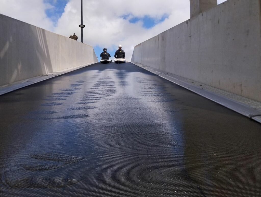 Mit 3,5 Metern Gesamthöhenunterschied und bis zu 12 m³/s Wasserdurchfluss erfüllt die Anlage die Standards der International Canoe Federation (ICF). Diesen hohen Anforderungen entspricht auch das neue Bootstransportsystem, das vom österreichischen Fördertechnikspezialisten SUNKID geplant und in die Anlage integriert wurde.
