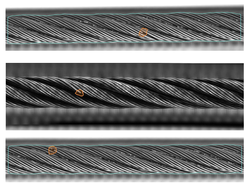AURA nimmt kontinuierlich Hochgeschwindigkeitsbilder des Seils auf und rekonstruiert die Seiloberfläche, um geometrische Schlüsselparameter wie Durchmesser, Schlaglänge und Ovalität zu messen. Gleichzeitig identifizieren KIAlgorithmen Oberflächenschäden und Drahtbrüche.
