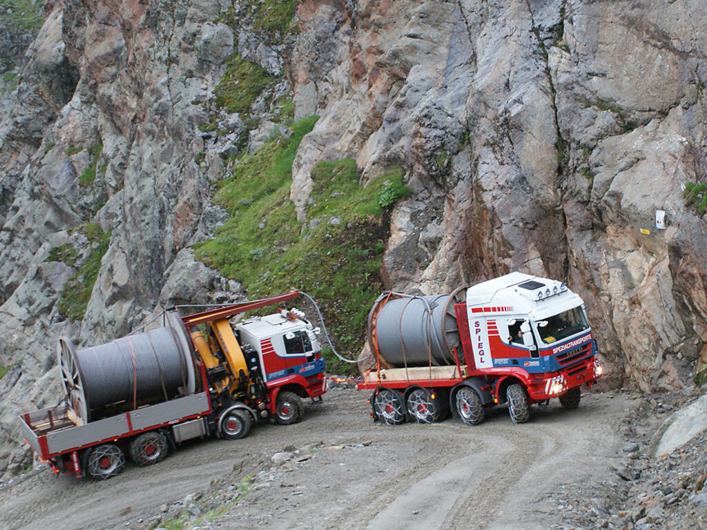 Auch die Logistik bis zur Bergstation wird präzise organisiert, damit alle Komponenten termingerecht und sicher ankommen.
