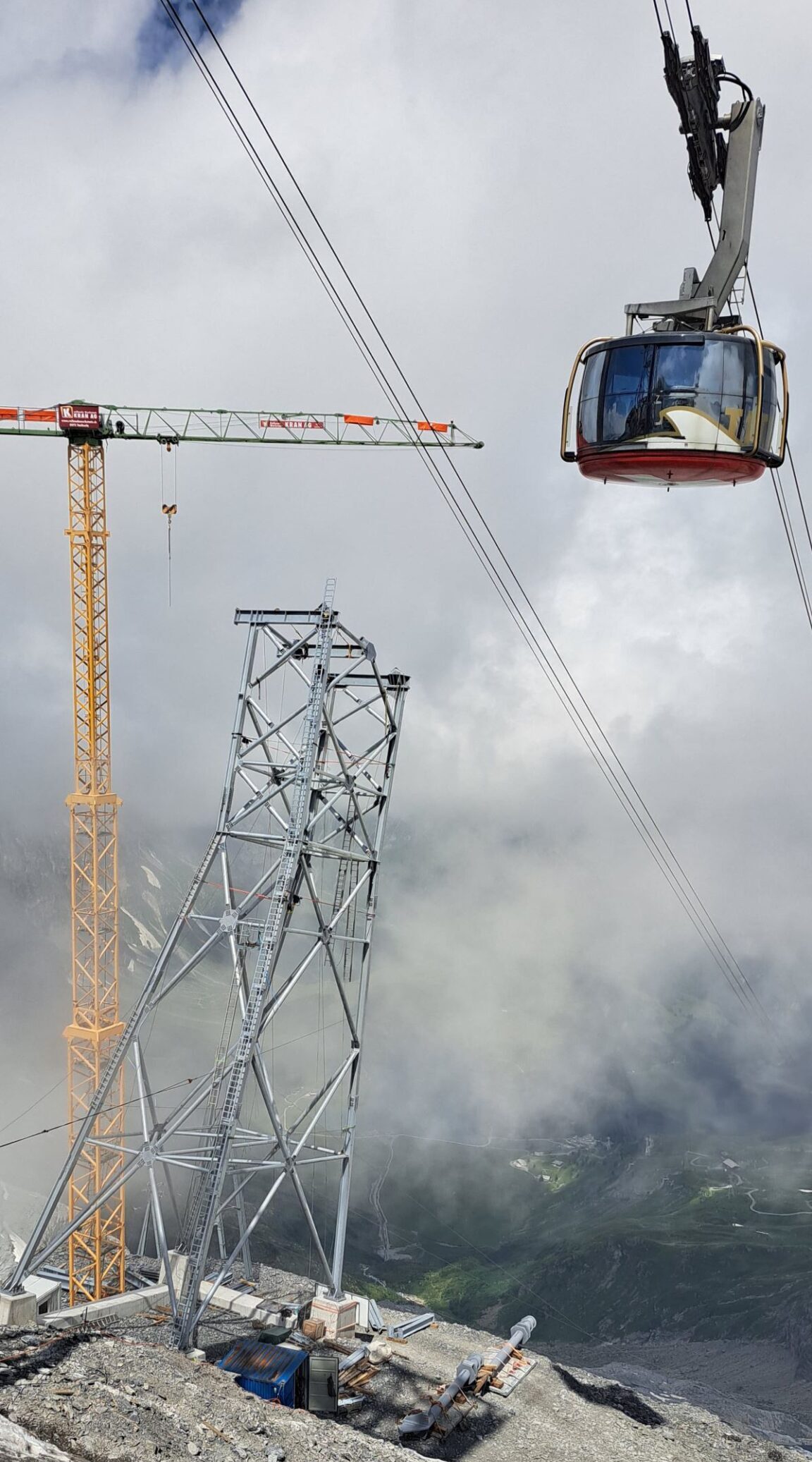 Die Stütze für die Pendelbahn ist 35 Meter hoch und besteht aus 84 Tonnen Stahl (ohne Sättel).