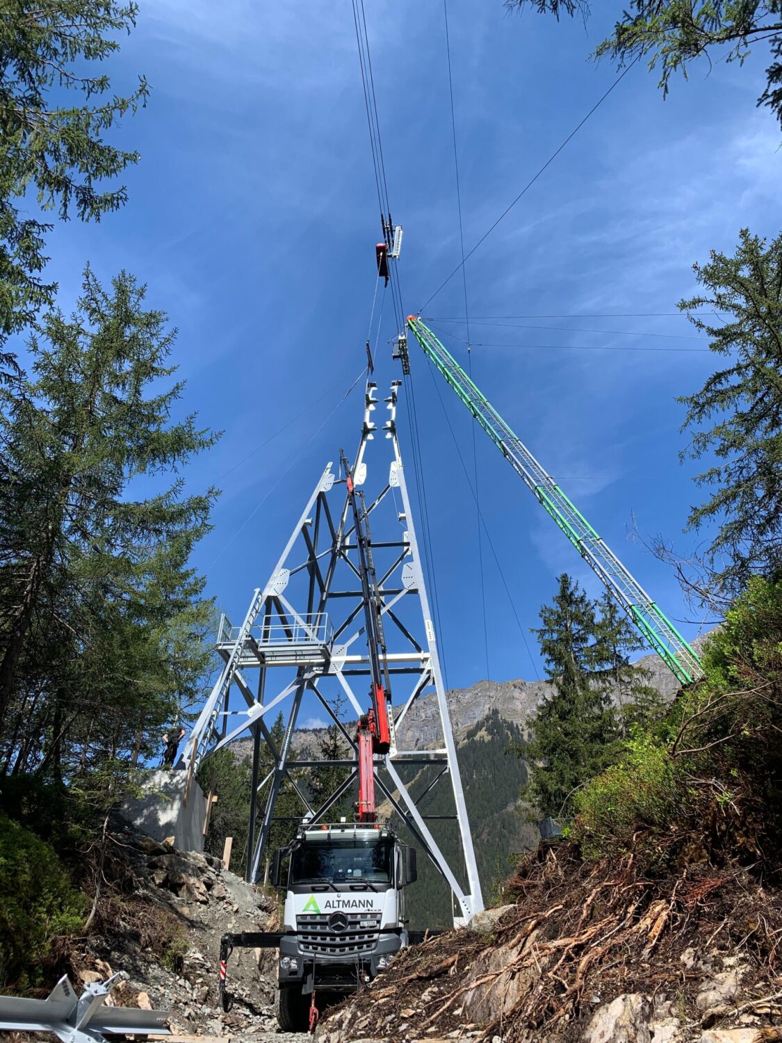 Das Projekt konnte ausschließlich durch den Einsatz von Materialseilbahnen realisiert werden, da das Gelände auf anderem Wege nicht zugänglich war. Auch die gesamte Materiallieferung sowie der Seilzug wurden von ALTMANN durchgeführt.