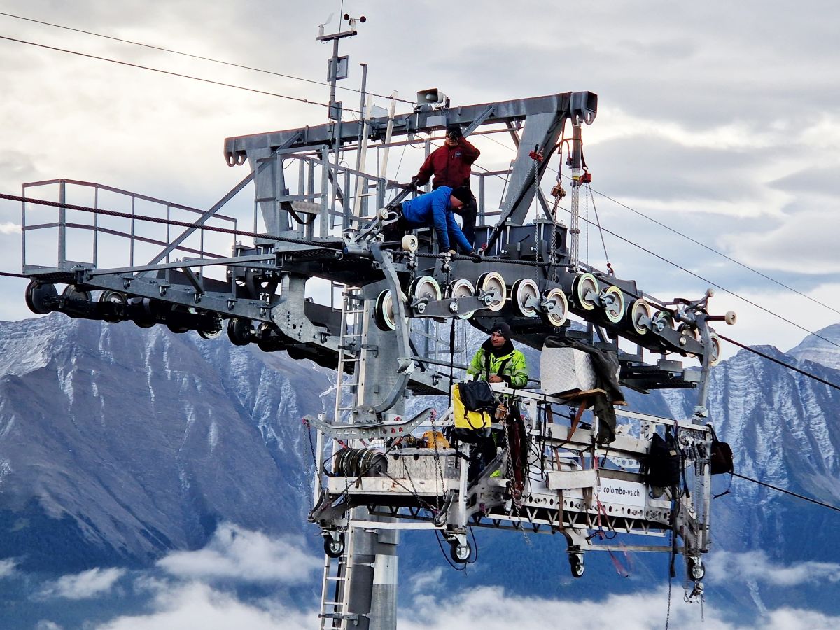 Doch er gab der Dienstleistung von COLOMBO bei einer 4er-Sesselbahn eine Chance. Denn die Demontage der bis zu 16-Rollen-Batterien ist aufwendig und erfordert eigentlich große Hubschrauber.