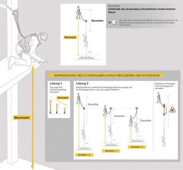 Das Sturzrisiko ist ein wesentlicher Faktor, den jeder Höhenarbeiter im Griff haben muss. Die Schwere eines Sturzes wird durch verschiedene voneinander unabhängige Parameter bedingt:
