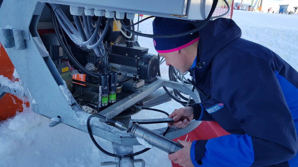 Der Technischer Leiter von Dachstein West, schwört auch bei Schneianlagen auf Interflon Food Grease LT2.