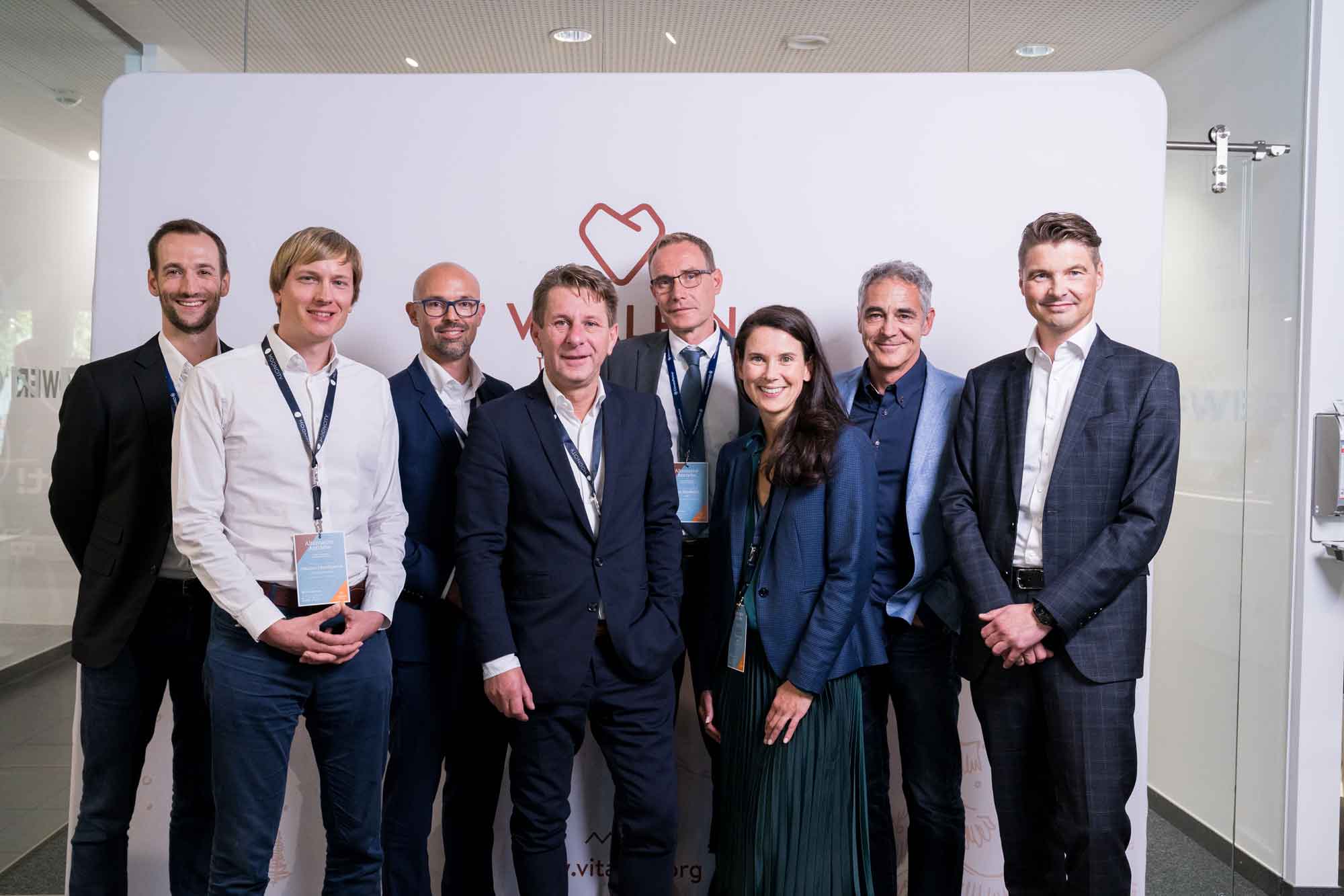 v.li. Jakob Sterlich (Climate Partner), Nikolaus Fleischhacker (FEN-Systems), Andreas Muigg (Prinoth), Alois Wach (da emobil), Max Staudacher (OMV), Theresa Haid (Vitalpin), Christian Clerici (Moderator), Wilfried Weitgasser (Porsche Holding Austria).