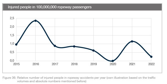 Die Unfallzahlen bei Seilbahnen sind sehr gering und zeigen kaum Schwankungen. Bei so niedrigen Zahlen kann ein einzelnes Ereignis jedoch großen Einfluss haben.